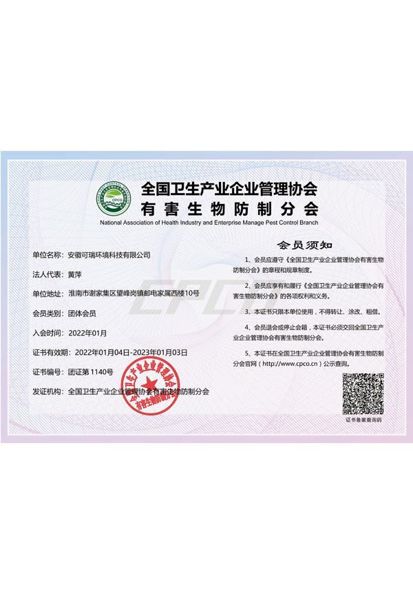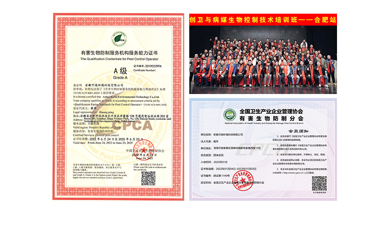 凱瑞蟲(chóng)控?fù)碛匈|(zhì)量管理體系認(rèn)證、環(huán)境管理體系認(rèn)證、國(guó)家有害生物資質(zhì)等各項(xiàng)證書